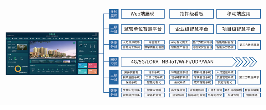 3、智慧工地系统平台推进信息技术与企业管理深度融合,集成新产品、新技术的现场创新应用,实现企业现场“精细化”管理;同时,系统可与第三方系统对接,共享基础信息同时,实现业务流与监控流的融合,形成互补效应;