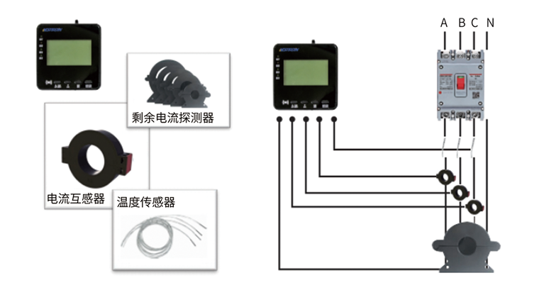 1、采用AC220V供电,能够采集三相电压、三相电流、一路漏电流、四路温度;